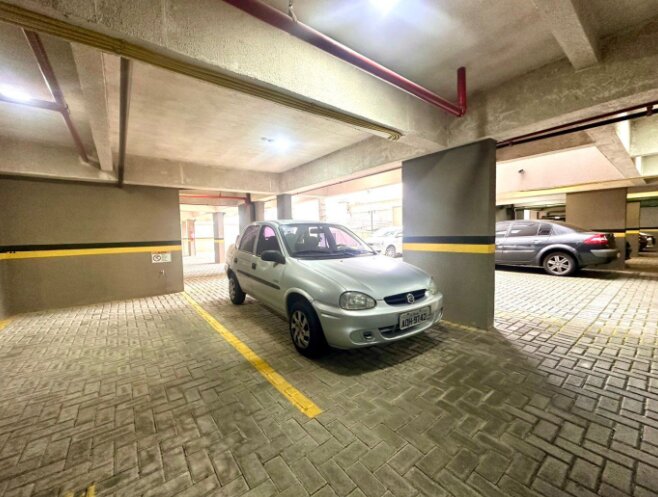 O prédio é novo, com vaga de garagem coberta, oferecendo segurança e praticidade para o seu dia a dia.